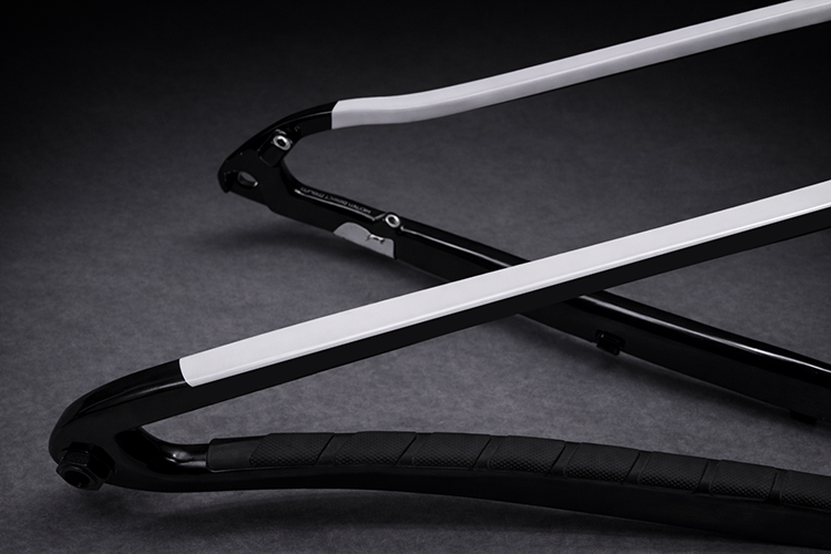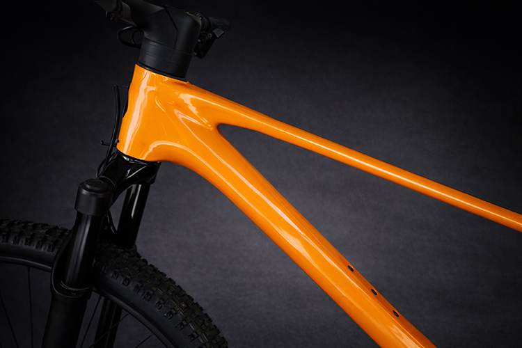 Sur cadre ou pièces carbone, inspection visuelle et tap-test, ponçage, pose de carbone avec résine, peinture, vernis.